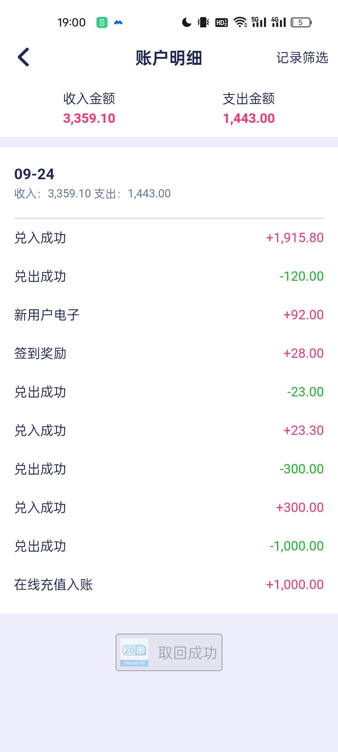 反馈28圈到账200  全额到账