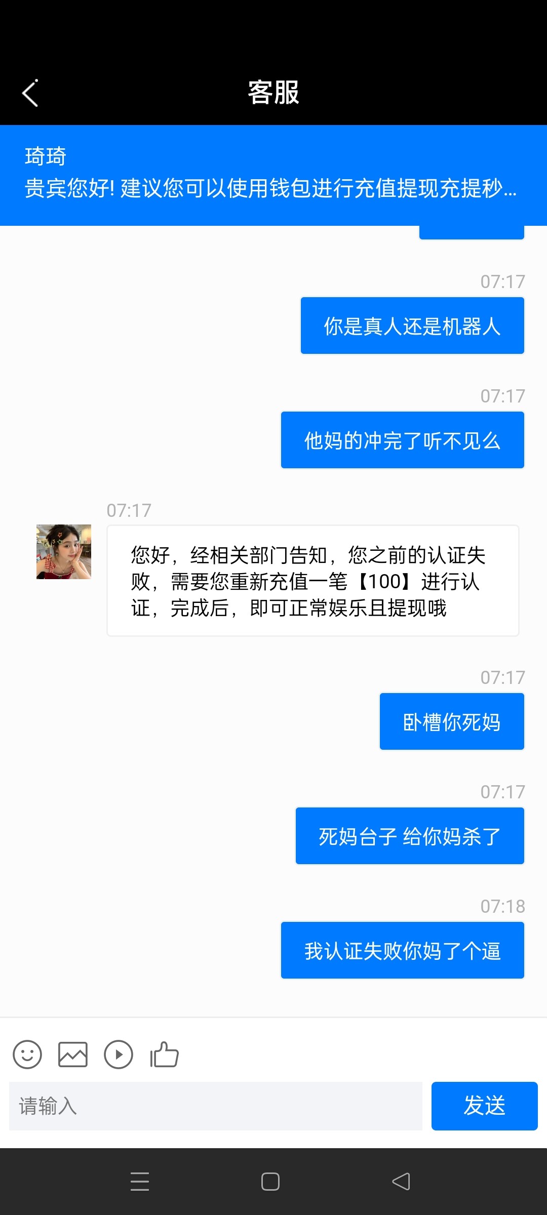 这几把台充值都出不了的 我他妈充了两次第2次打到了400块钱提现让老子再充300 直接把他全家问候了一遍艹