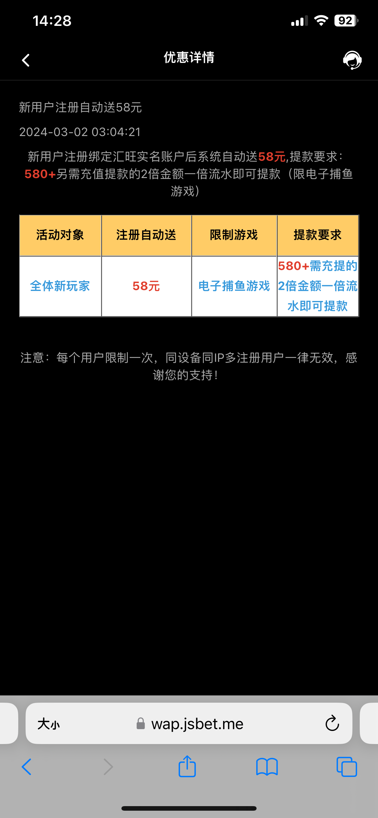 注册绑定汇旺账号5分钟送到 (如果没有汇旺觉得打不上去的直接随便绑定汇旺手机号就行了)提现需要充值金额的两倍