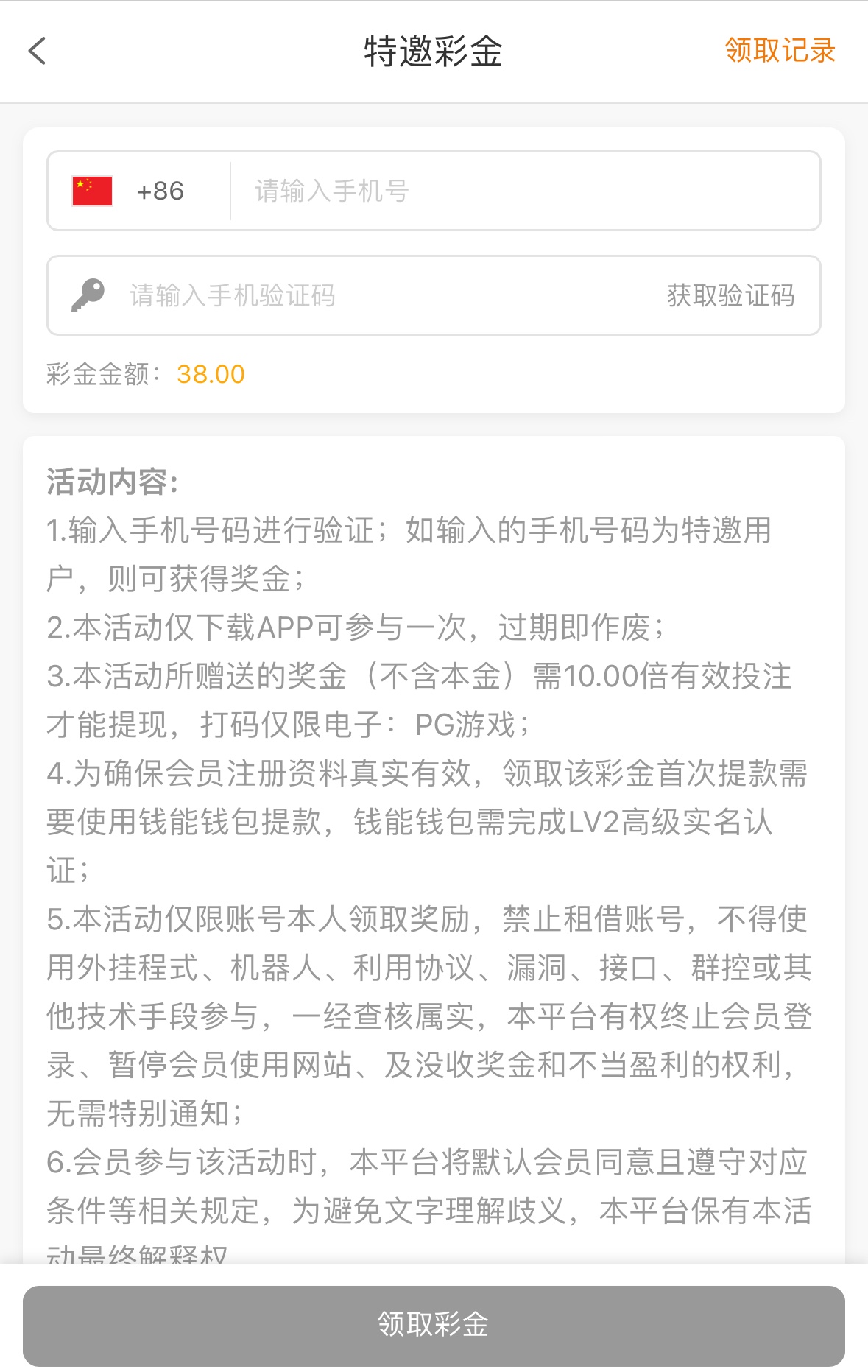 彩金10倍流水,限PG电子,限钱能取款