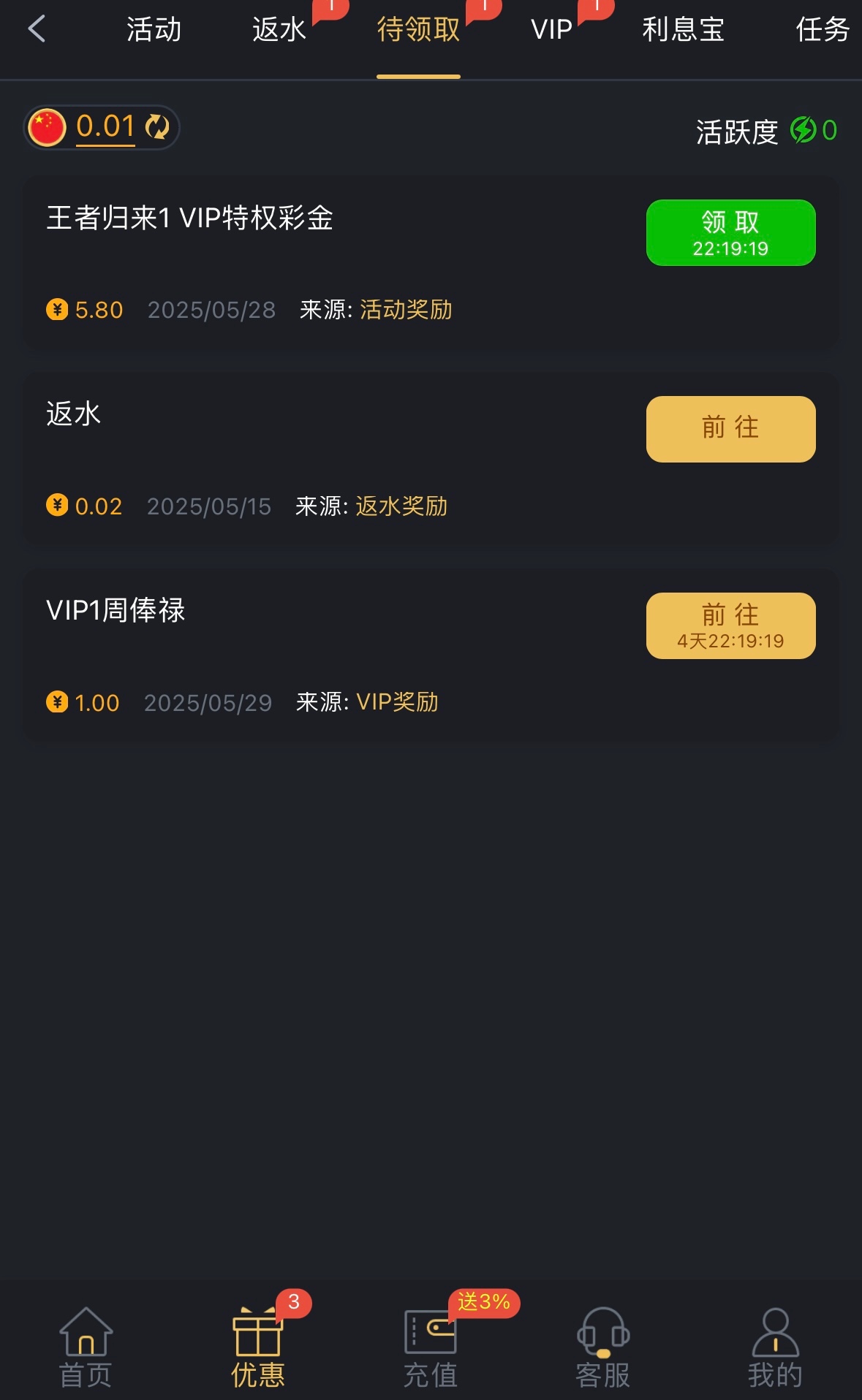 有充值过的兄弟可以登入上去看看优惠里有没有