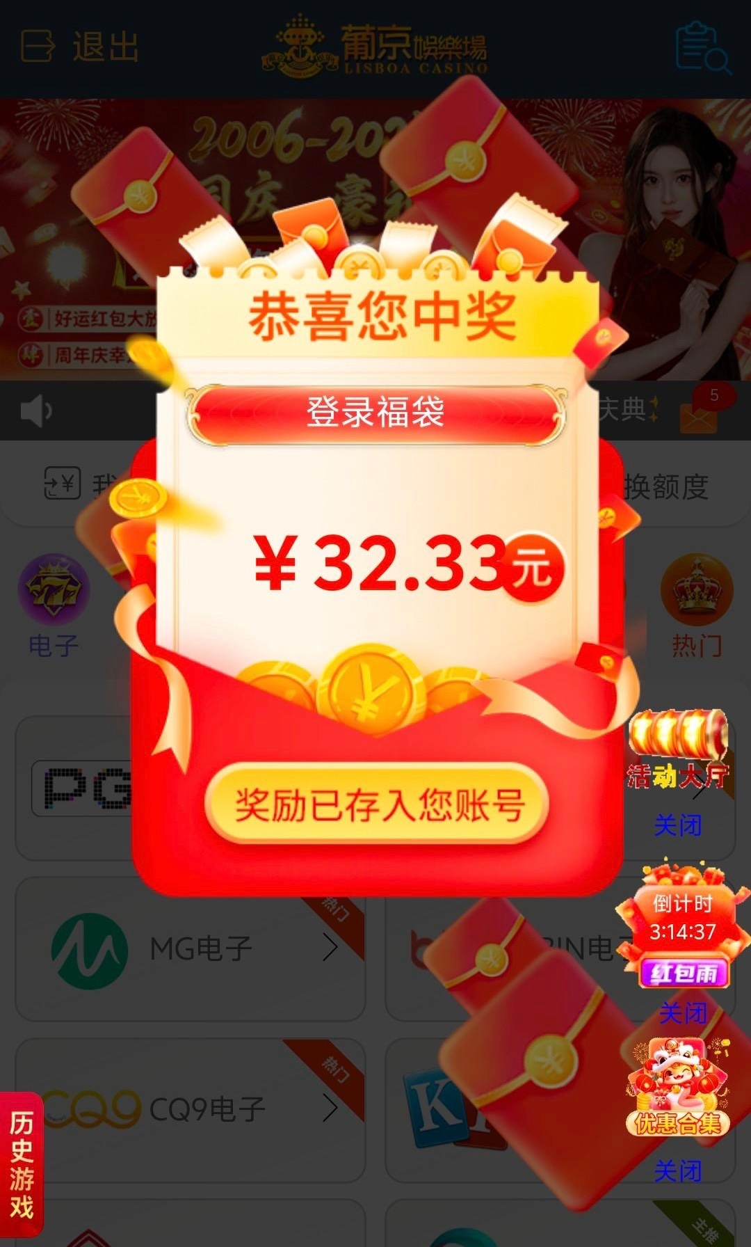 近期充值娱乐的大兄弟登入看看有没有弹出福袋