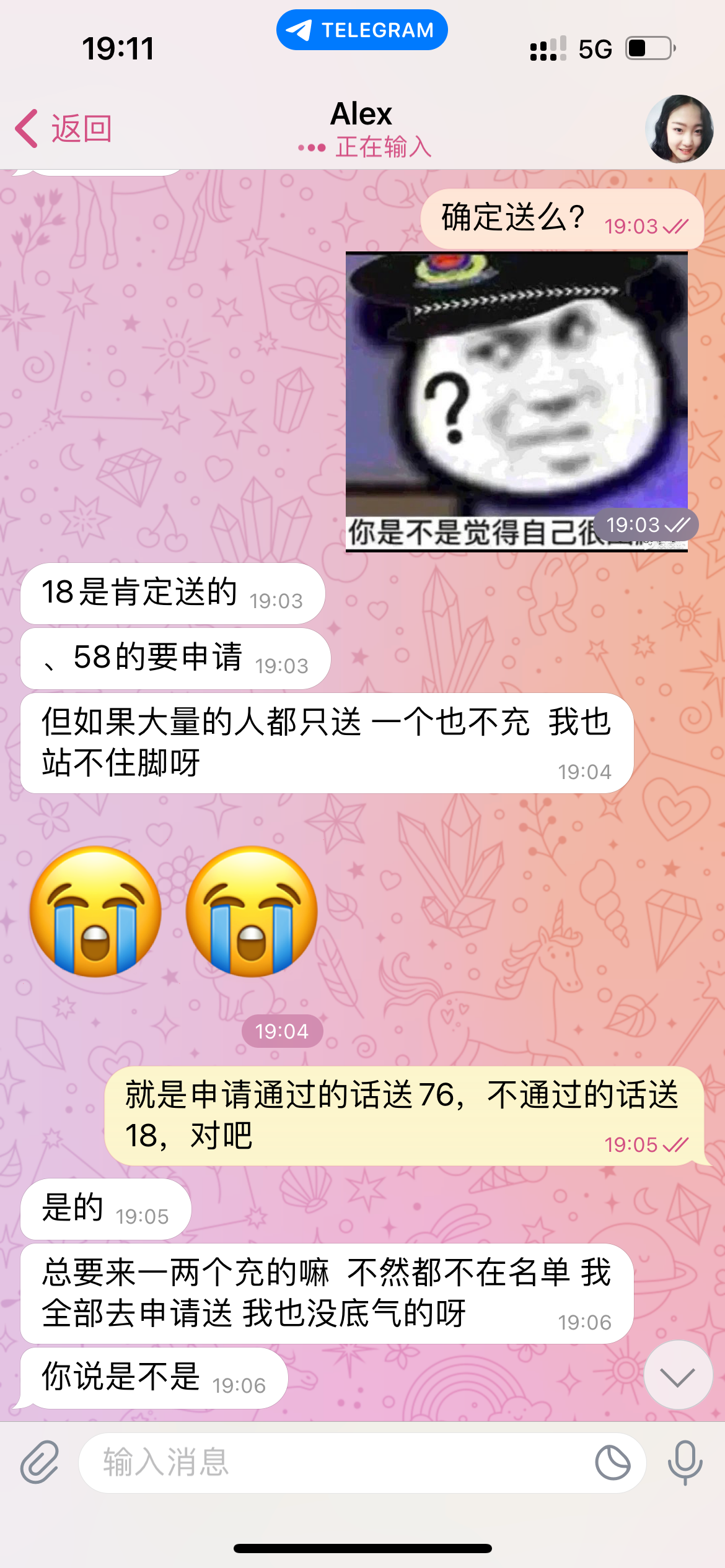 已到18,58的不知道怎么跟他讲申请