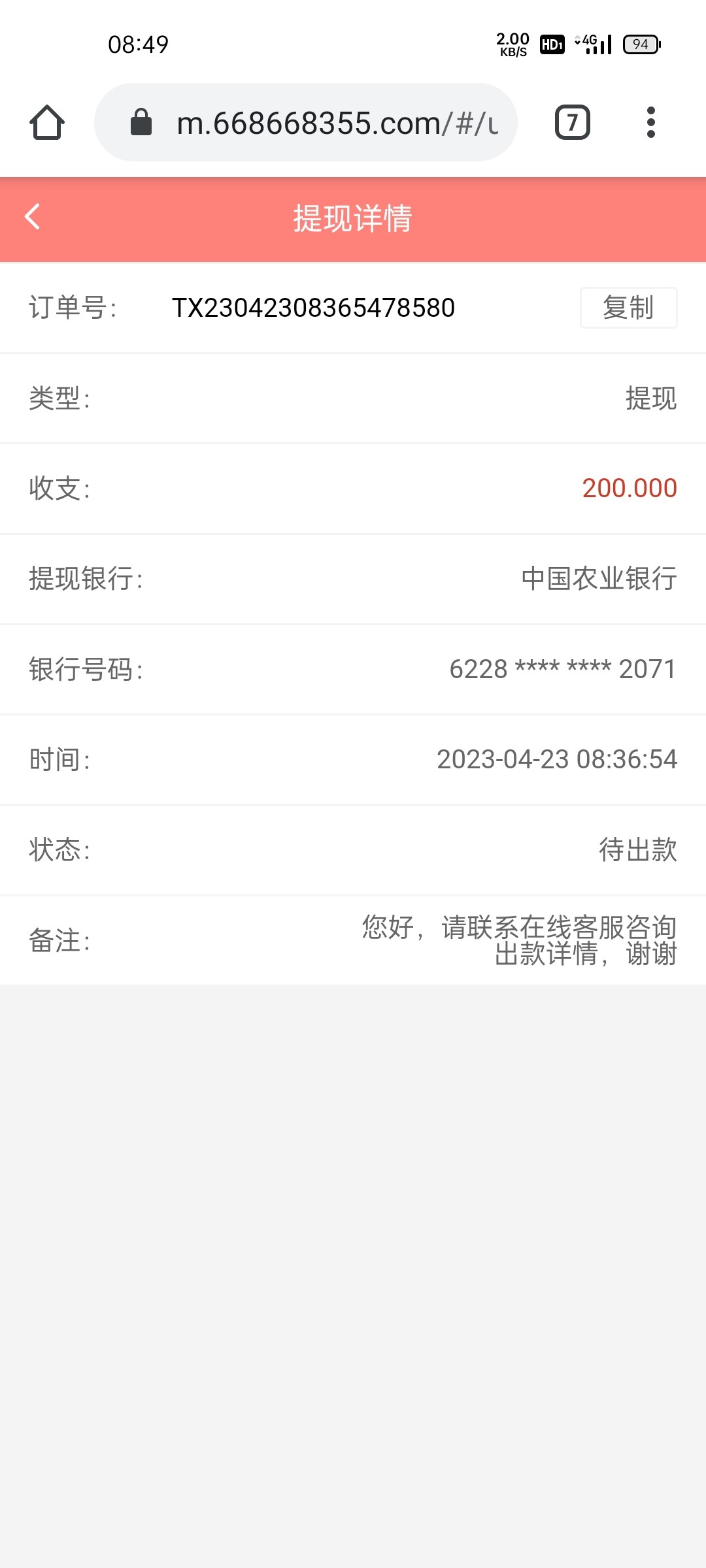不出款就直接给你退了,除非你是拿别人的手机号在这套利
