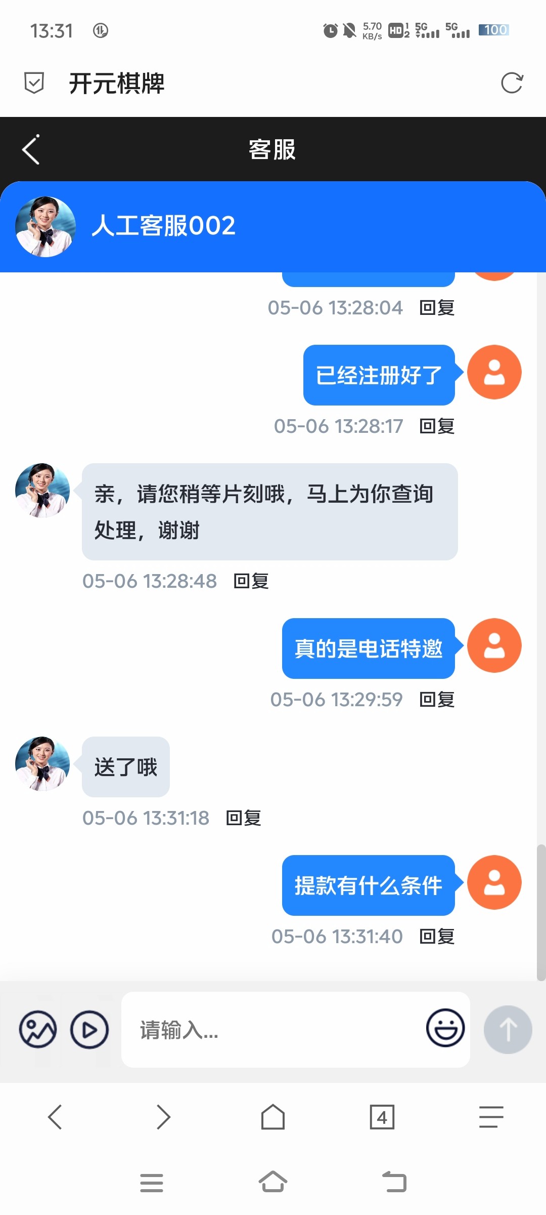 客服根本不说话的,唉