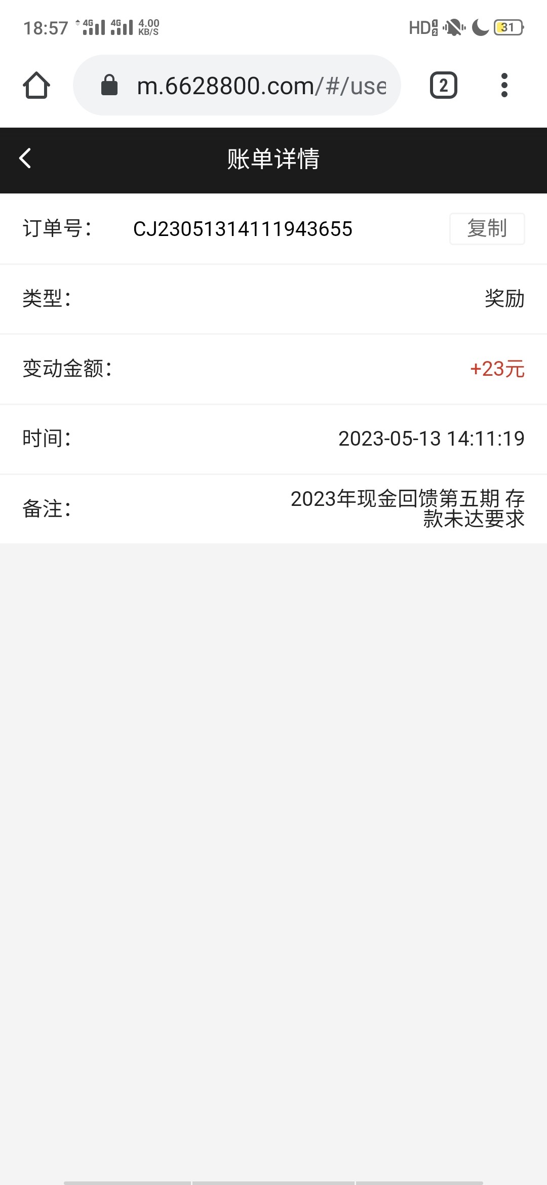 23回馈已到账,200提