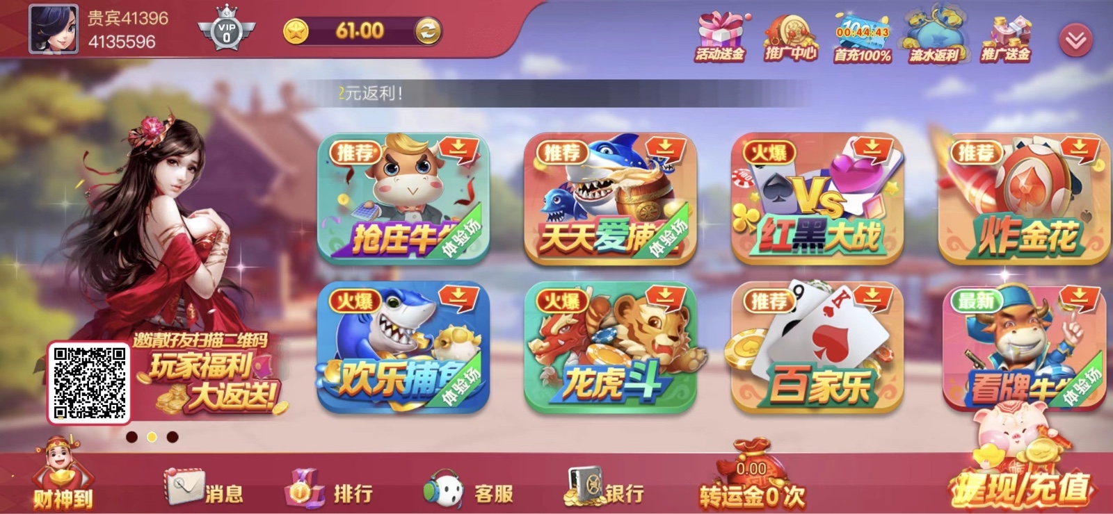 活动:新用户注册绑定手机号送3找在线客服申请特邀彩金然后根据客服引导领58一共61,最低100即可提现